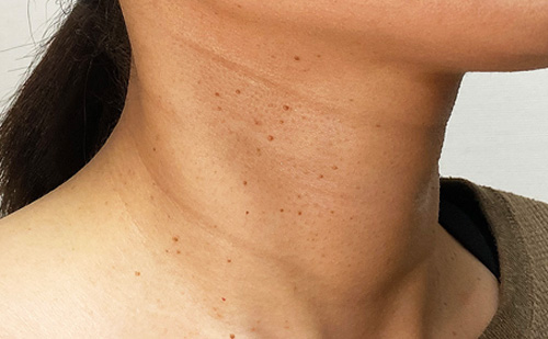 スキンタッグは、首まわりや脇、胸元などにできる小さな盛り上がり(良性の皮膚の腫瘍)で、ウイルス性のイボとは異なり感染するものではありません。