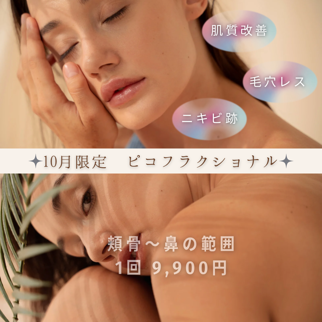 『10月限定』ピコフラクショナル 頬骨〜鼻1回9,900円